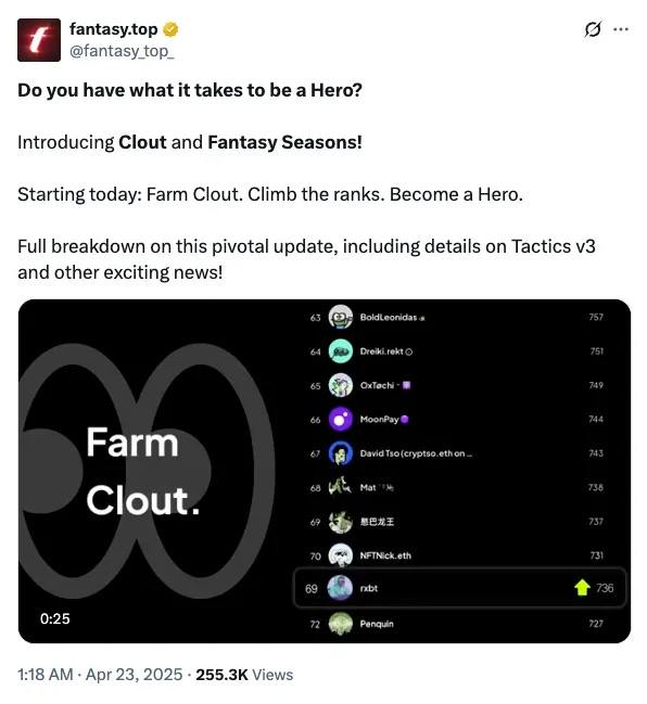 Fantasy made waves this week with the launch of Clout — a new feature that rewards users for engaging in crypto discussions. By participating, users can earn points, climb leaderboards, and become 'heroes' eligible for up to $10,000 in prizes. Strategic updates to the platform, like fee changes and the introduction of seasonal competitions, have fueled a surge in community energy. Early traction suggests that gamified participation models could redefine crypto social platforms.